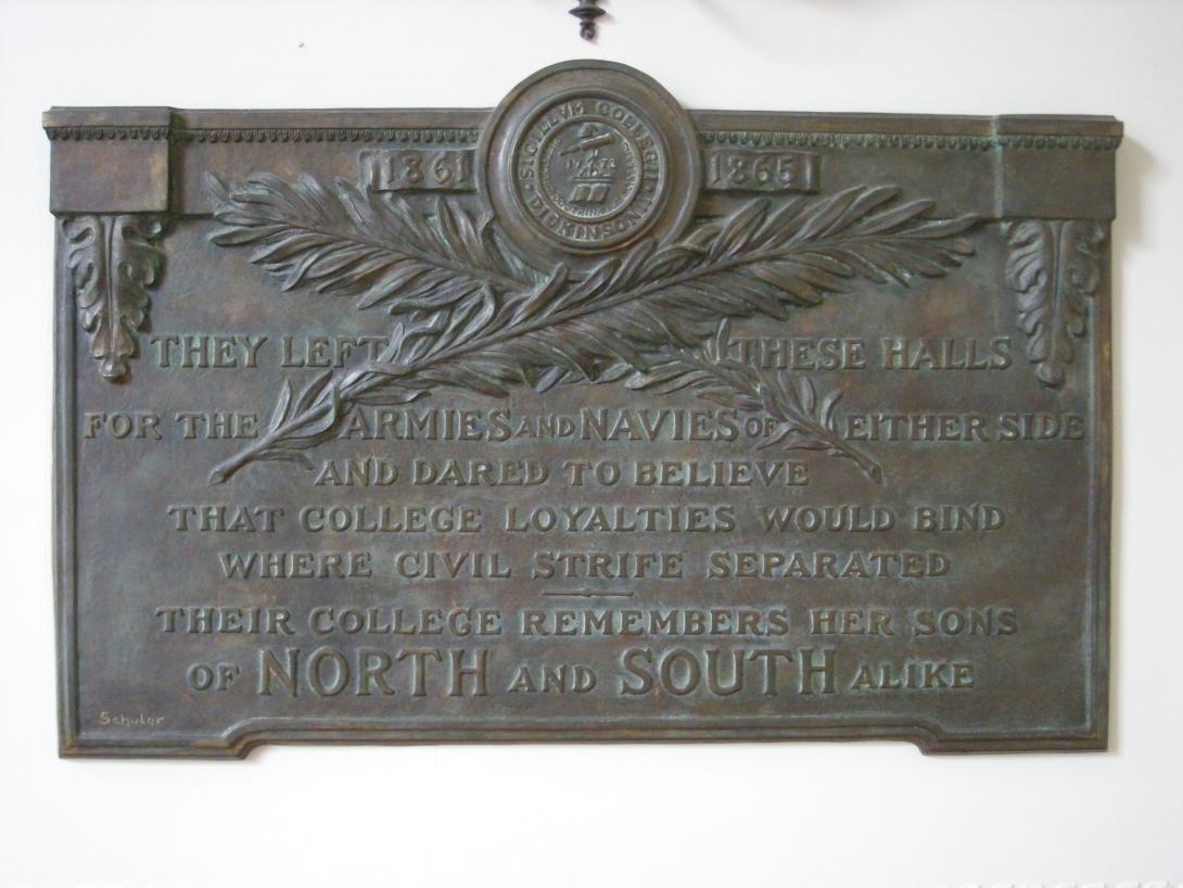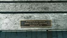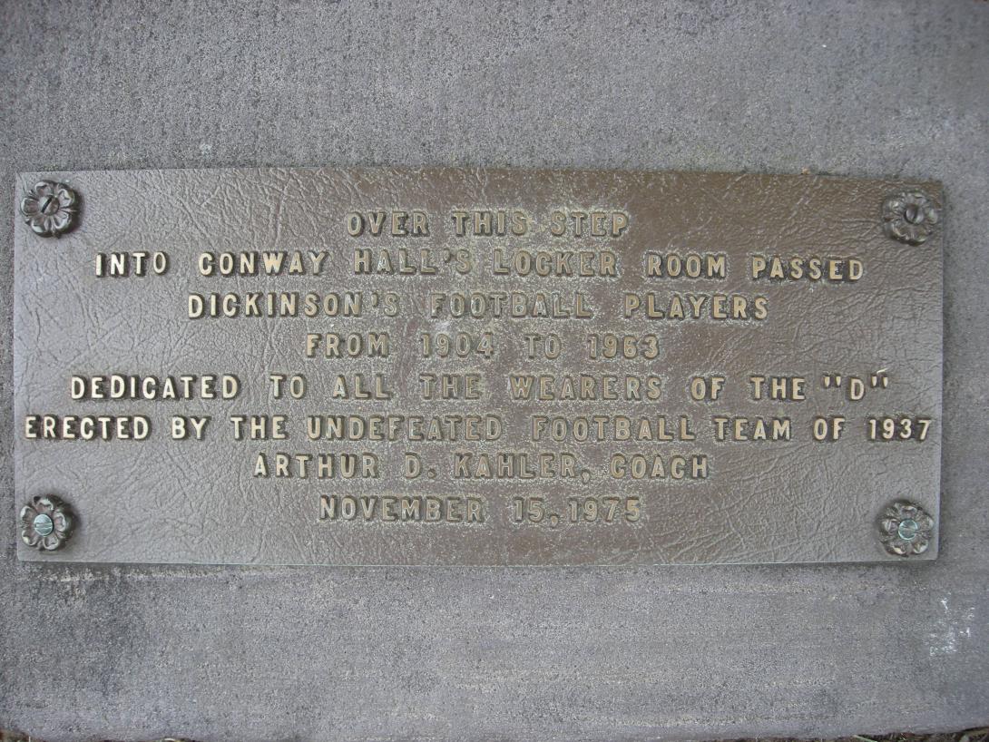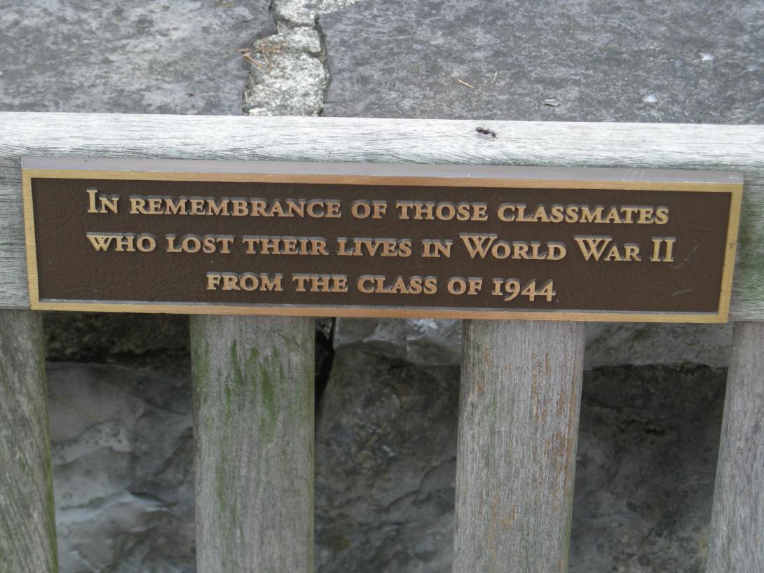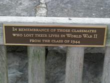 Bench plaque recognizing Dickinsonians killed in World War II given by the Class of 1944. |