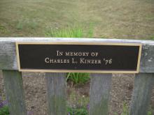 Bench plaque in memory of Charles L. Kinzer '76 located on the MacPhail Baseball Field, off Rt. 11/Ritner Highway; behind the Sylvan Learning Center. |