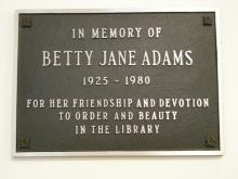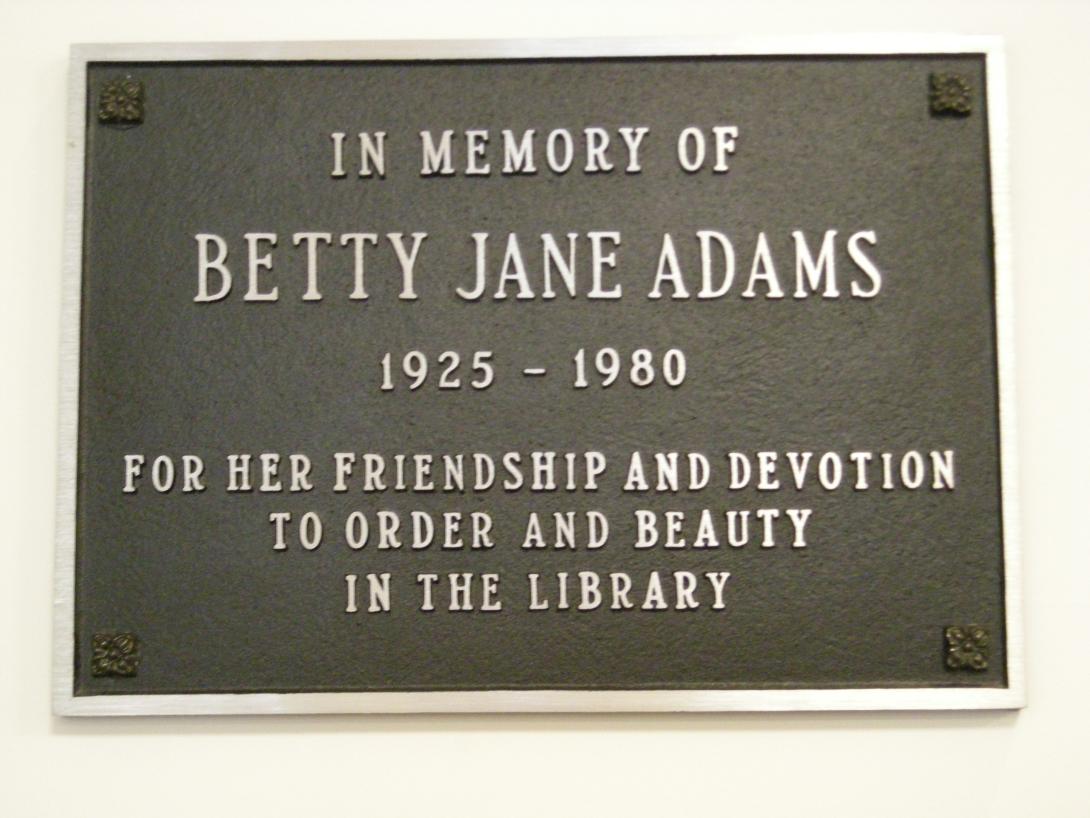 In memory of Betty Jane Adams for her friendship and commitment to the library. |