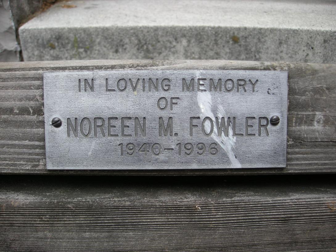 Bench located outside of the Kline Center/Dickinson indoor swimming pool is in loving memory of Noreen M. Fowler, 1940-1996. |