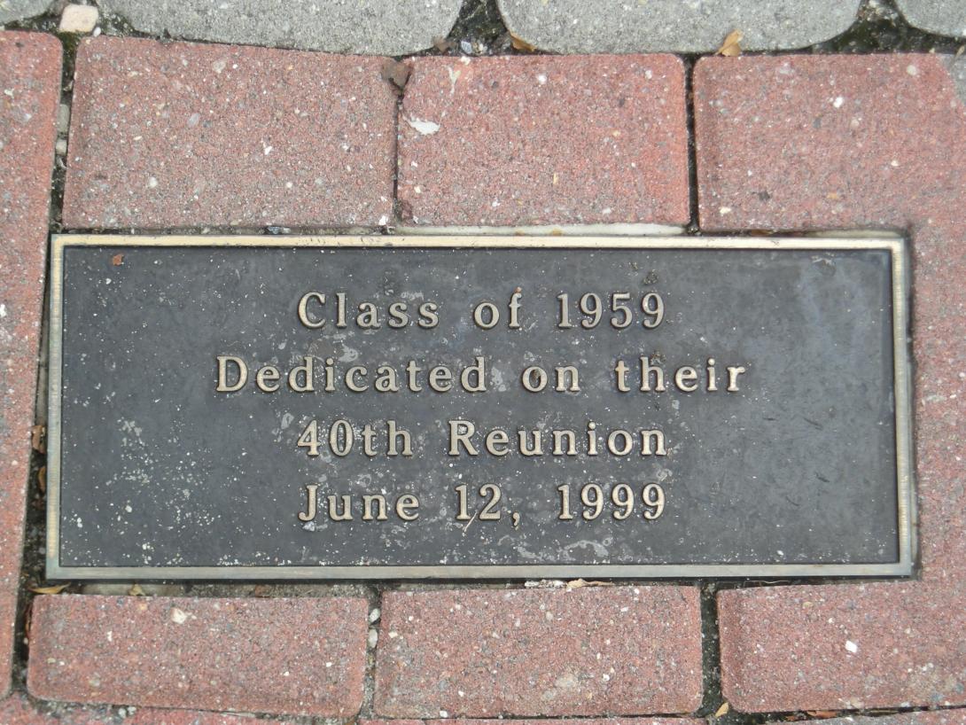 Plaque in Britton Plaza dedicated by the Class of 1959 during their 40th Reunion on June 12, 1999. |