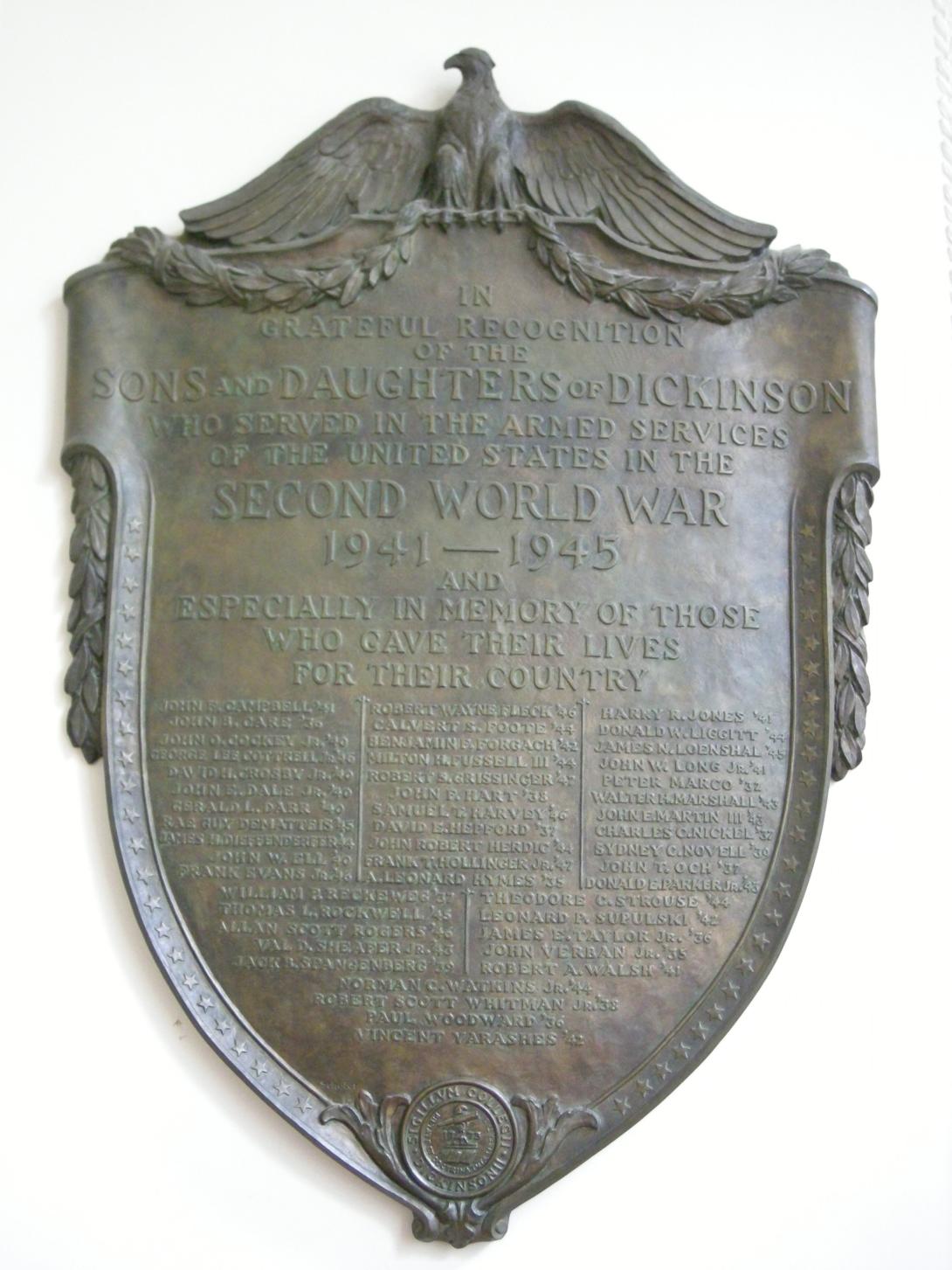 Dickinsonians killed in World War II | Britton Plaza | ||