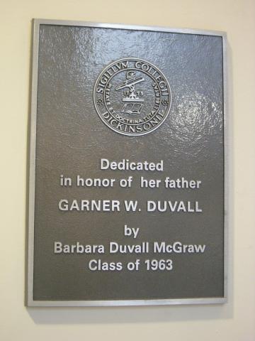 By admin , 27 July, 2017 TOME; Second Floor. A gift of Barbara Duvall McGraw, class of 1963 In memory of Garner W. Duvall Status active Location Tome