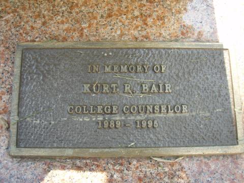 By admin , 27 July, 2017 Single Tree Planting in memory of Kurt R. Bair, College Counselor, 1989-1995. Located on the Bosler South lawn. In memory of Kurt R. Bair Status Active Tree Species 'Sargent' Cherry Location Bosler, South Lawn