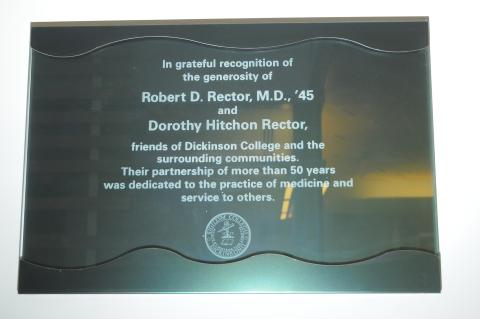 By admin , 27 July, 2017 In recognition of Robert D. Rector, M.D. '45 & Dorothy Hitchon Rector whose gift to the College made the Rector Science Complex possible. In memory of Robert D. Rector, M.D. '45 & Dorothy Hitchon Rector Status Active Location Stuart Hall Lobby