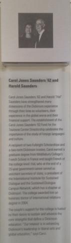 Carol Jones Saunders '62 and Harold "Hal" Saunders Individual Founders Society Plaque. The Saunders established the Carol Jones Saunders '62 Fund for the Toulouse Center Directorship which celebrates the importance of foreign languages and culture. Dedicated in Inaugural Founders Society Ceremony on Friday, May 6, 2011.