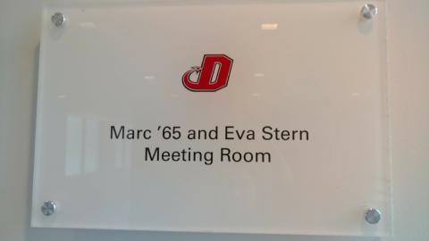 By renaultt , 13 August, 2018 Naming gift from Marc '65 and Eva Stern in honor of President William G. Durden 18"x12" Lucite In memory of NA Status Active Tree Species NA Location Durden Athletic Training Center (DATC) second floor entrance to meeting room